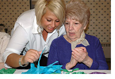 This program allows caregivers to maintain the dementia client in the familiar surroundings of their own home, while offering them respite from the stress of caring for someone suffering from this disease. A full-time nurse monitors medications and keeps close track of clients’ medical conditions through communications with caregivers and physicians. In addition, all of the clinical services of the skilled nursing facility are available to the day center dementia client including dietary counseling, podiatry services, occupational therapy and vision care. The day center social worker also provides support to clients and family members through support groups and one-one-one interactions.